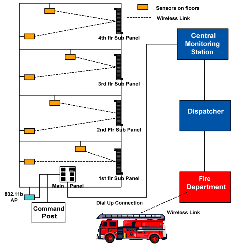 ITL's contribution to DTFR was in the areas of communications, networking, and indoor localization. Specifically, we designed and prototyped a wireless ad hoc network (also known as a mesh network) based on commercial-off-the-shelf (COTS) hardware that provides users with multimedia communication capability. Each handheld communication device is an HP/Compaq iPAQ PDA, a PC tablet, or a PC laptop running on Linux, equipped with an IEEE 802.11b WLAN card, and uploaded with NIST-developed research prototype implementations of a number of protocols and algorithms. These communication devices automatically form a network as the first responders from various jurisdictions converge on the scene of an emergency and are within radio range of each other.