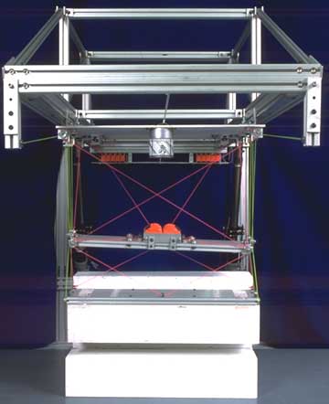 The following photos show: (a) the spreader bar is lifting a lower cargo container from a mock ship, (b) placing the container on the MOB cargo deck area, (c) accessing a top container shown from the end view, (d) luffing the crane to allow ship access and mooring to the MOB, (e) and (f) the trolley when in the luffed configuration, and (g) a mock-up of the Intelligent Spreader Bar.