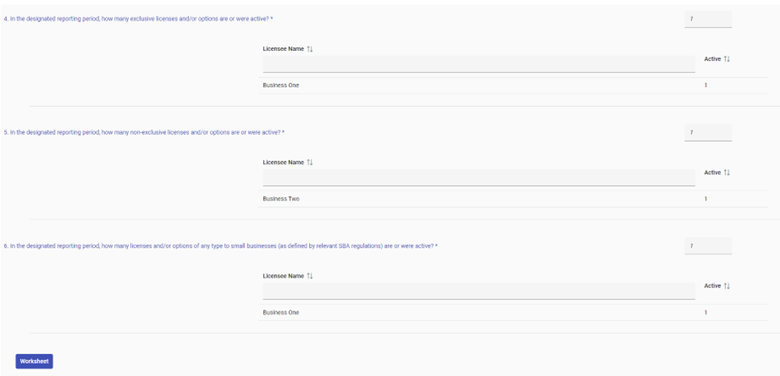 Example of Questions 4-6 filled in from Licensee Worksheet