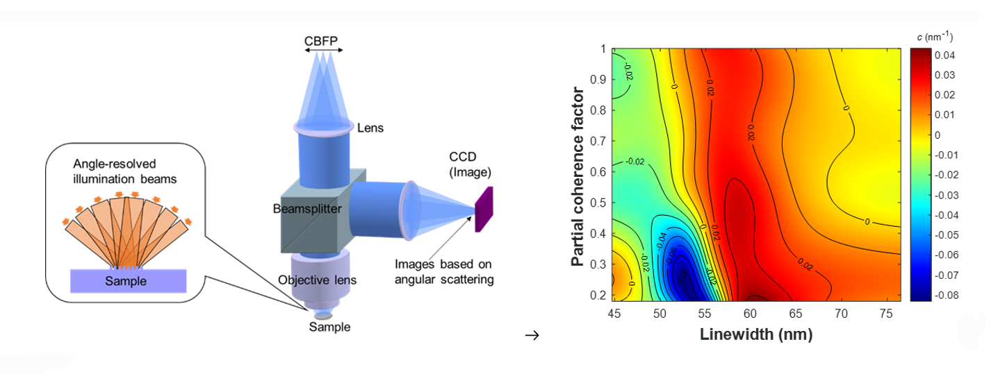 Schematic of optical microscopy and sub-nm dimensional sensitivity map