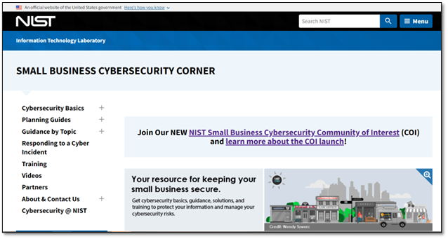 Screenshot from the NIST Small Business Cybersecurity Corner