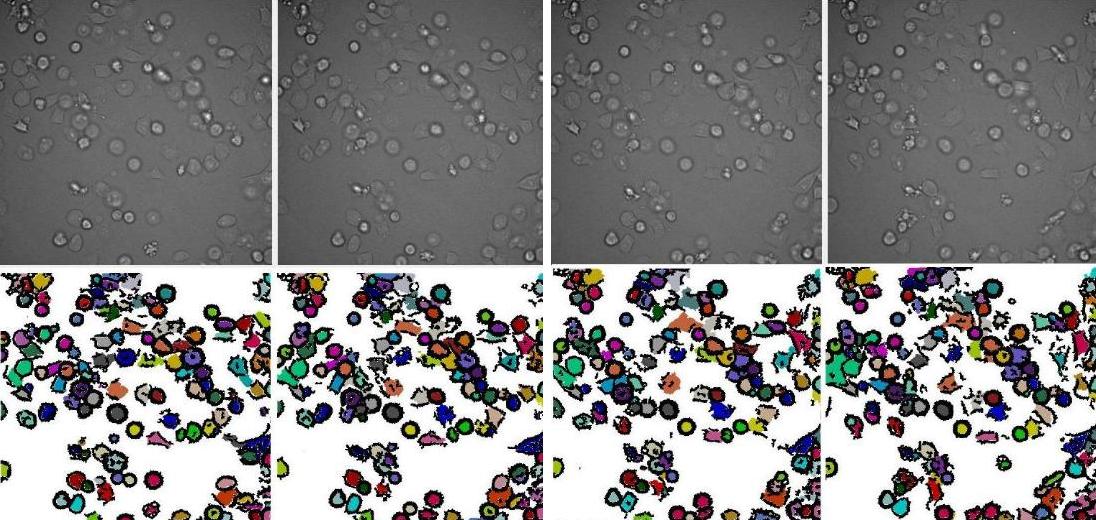 Figure 2: Sample images and the resulting segmentation masks with cell tracking.