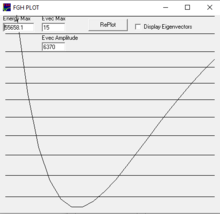 The FGH1D program calculates the eigenvalues (energy levels) and eigenvectors (wavefunctions) for an arbitrary one-dimensional potential. The program can generate potentials of a few fixed forms: Morse, polynomial in x2 - for double wells, cos(nx) - for internal rotations. The program can read in potentials from a file or from the clipboard in the form of x,y pairs. It can interpolate these potentials with a spline fit.