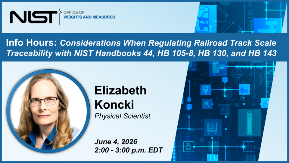 NIST OWM Info Hour: Considerations When Regulating Railroad Track Scale Traceability with NIST Handbooks 44, HB 105-8, HB 130, and HB 143