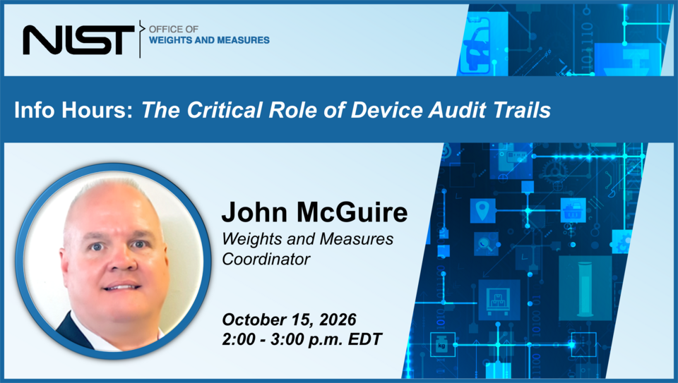 “Device Audit Trails are an alternative to lead and wire seals. They are the guardians of trust-capturing every action, proving integrity, and turning compliance from a checkbox into accountability.” At the completion of this Info Hour, you will be able to describe the three categories of sealing requirements, how they apply, and list the two types of metrological parameters that must be sealed. OWM encourages you to share and discuss your experiences on Audit trails to enhance participant interaction.